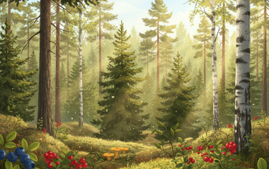 Lär dig om den svenska skogen! Öva på trädarter, bärväxter och viktiga begrepp som barrskog, lövskog, fotosyntes och svampars uppbyggnad.
