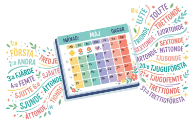 Lär dig ordningstal på svenska – från första till trettioförsta. Öva att koppla ihop siffror med rätt ordningstal och skriva datum med ord och siffror.