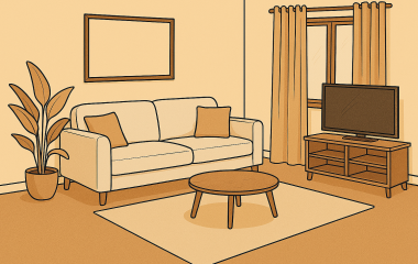 Lär dig vad möbler och olika saker i vardagsrummet heter på svenska. Träna på ord som soffa, bokhylla, fåtölj och olika typer av lampor.