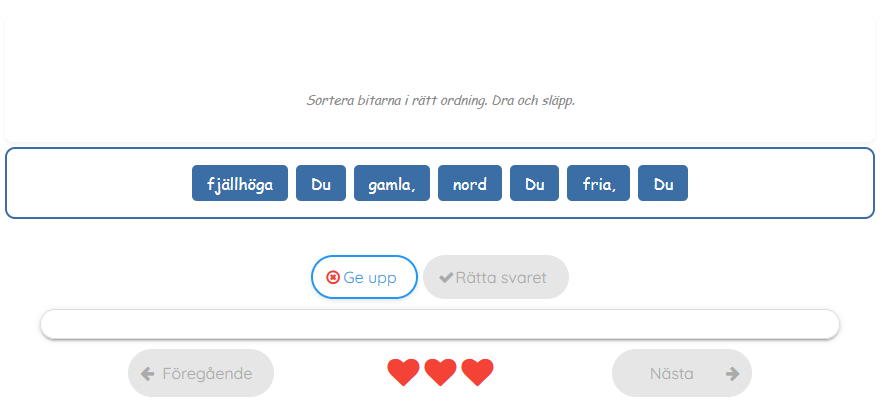 Kör eleven fast finns knappen Ge upp – då visas rätt ordning och eleven kan försöka igen.